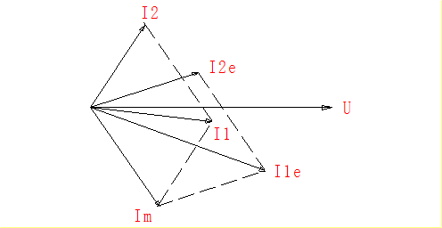 電機(jī)在某一負(fù)載下運(yùn)行時(shí),其轉(zhuǎn)子電流為I2e、定子電流為I1e,向量圖如下所示。